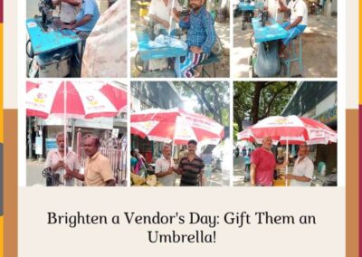 In a bid to provide relief from scorching temperatures, Anbu Suzh Ulagu Foundation initiated the Cooling Canopy: Sheltering Our Streets program. This initiative aimed to distribute umbrellas to street vendors across seven districts, offering them much-needed respite from the relentless sun.
